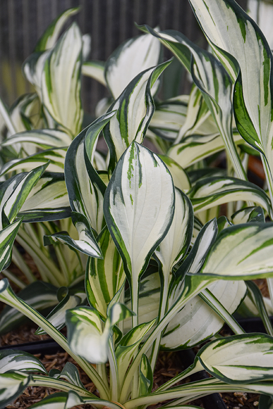 Fireworks Hosta features dainty spikes of lavender tubular flowers rising above the foliage in mid summer. Its attractive narrow leaves remain white in colour with distinctive dark green edges throughout the season.