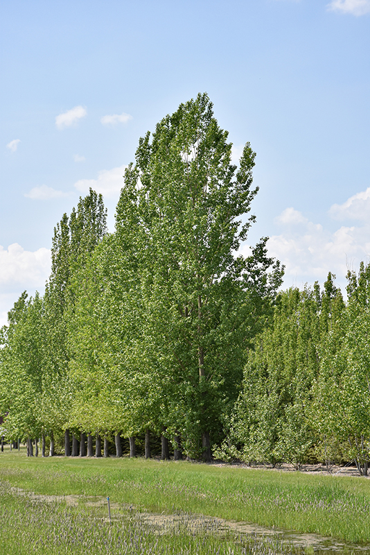 Prairie Sky Poplar is a deciduous tree with a narrowly upright and columnar growth habit. Its relatively coarse texture can be used to stand it apart from other landscape plants with finer foliage.