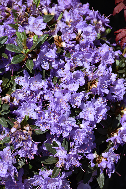 Ramapo Rhododendron is clothed in stunning clusters of violet trumpet-shaped flowers with purple overtones and lavender centers at the ends of the branches in mid spring. It has green evergreen foliage. The narrow leaves turn coppery-bronze in the fall, which persists throughout the winter.
