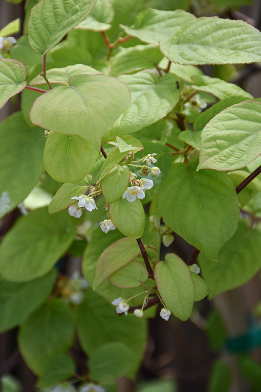This interesting vine valued for its breathtaking white-pink variegated foliage all season long, small white fragrant flowers and plentiful fruit after three years or so on female plants; an underutilized climber that's excellent for screening