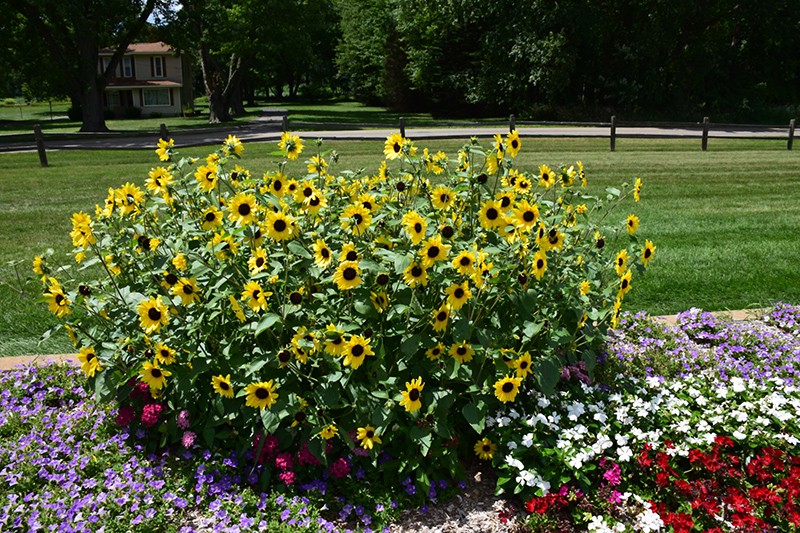 Sunfinity® Sunflower will grow to be about 4 feet tall at maturity, with a spread of 32 inches. When grown in masses or used as a bedding plant, individual plants should be spaced approximately 18 inches apart. This fast-growing annual will normally live for one full growing season, needing replacement the following year.