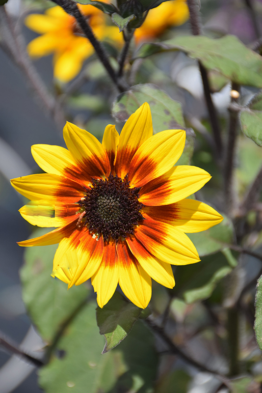Suncredible® Saturn Sunflower features showy semi-double yellow daisy flowers with dark brown eyes and coppery-bronze centers at the ends of the stems from late spring to mid fall. The flowers are excellent for cutting. Its pointy leaves remain dark green in colour throughout the season.