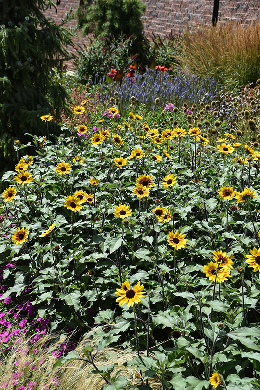 Suncredible® Saturn Sunflower is an herbaceous annual with an upright spreading habit of growth. Its medium texture blends into the garden, but can always be balanced by a couple of finer or coarser plants for an effective composition.