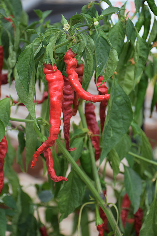 A wonderful selection that produces high yields of 6" long and narrow, wrinkled peppers; ripens from green to red; heat level increases as fruit ripens; great addition in salsa, stir fry or dried to make seasoning; wonderful in sunny containers or gardens