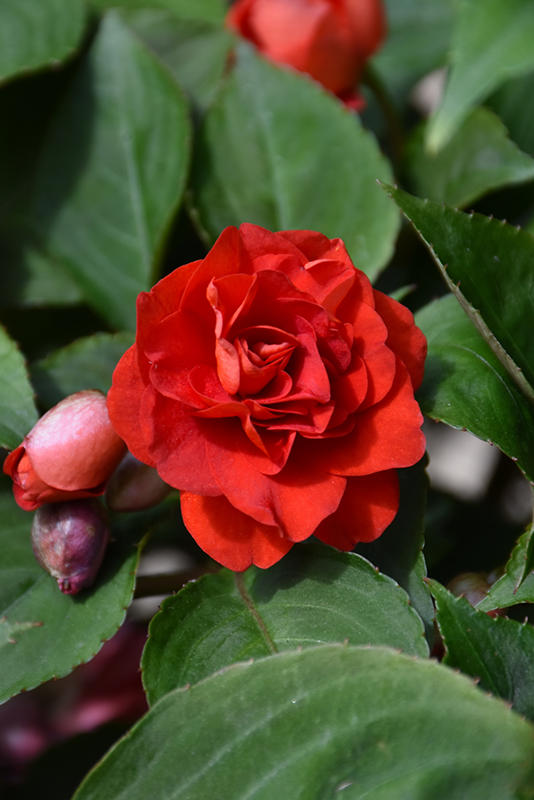 An outstanding and disease resistant series presenting double blooms resembling roses; dark red flowers are set on lush mounds of medium green foliage; shade tolerant and self cleaning; ideal for use in borders, beds and combination planters