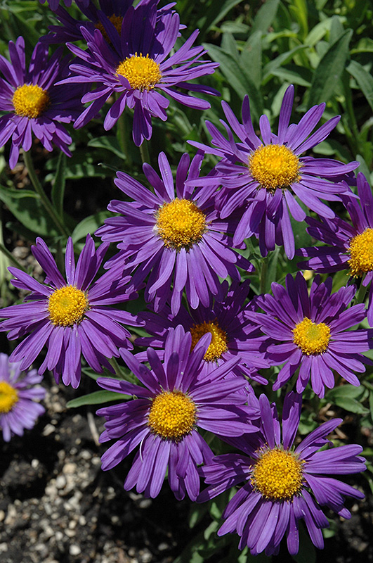 Dark Beauty Alpine Aster will grow to be about 10 inches tall at maturity, with a spread of 18 inches. Its foliage tends to remain low and dense right to the ground. It grows at a medium rate, and under ideal conditions can be expected to live for approximately 4 years. As an herbaceous perennial, this plant will usually die back to the crown each winter, and will regrow from the base each spring. Be careful not to disturb the crown in late winter when it may not be readily seen!