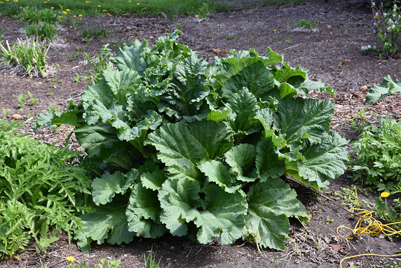 Canada Red Rhubarb will grow to be about 24 inches tall at maturity extending to 4 feet tall with the flowers, with a spread of 3 feet. It grows at a fast rate, and under ideal conditions can be expected to live for approximately 10 years. As an herbaceous perennial, this plant will usually die back to the crown each winter, and will regrow from the base each spring. Be careful not to disturb the crown in late winter when it may not be readily seen!